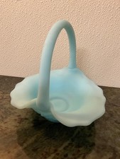 Vintage Blue Ruffled Basket, Fenton Art Glass, Candy Dish, Fancy Blue Glass