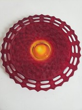 GLOWS UV Fenton Basket Weave Open Edge Ruby Red Amberina Glass Plate 8" Yellow