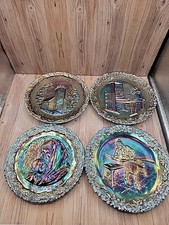 4 8" Fenton Carnival Glass Plates Christmas In America, Craftsman Of America