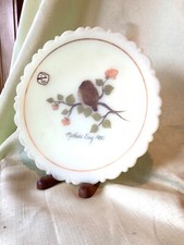 Fenton Custard Satin Glass Sunset Plate Vintage Hand Painted and Artist SIgned