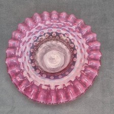 Fenton Hobnail Crimped Ruffled Edge Cranberry Vintage Opalescent Dish Plate