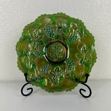 FENTON Carnival Glass 7 1/2” Maple Leaf And Grape Green Plate Get used Condition