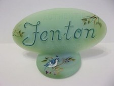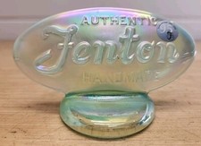 Rare Vintage FENTON Green Iridescent Glass Logo Dealer Sign 13 Cm