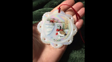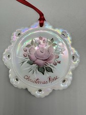 Fenton Glass White Iridescent Snowflake Floral Christmas Rose Ornament