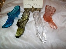 Pair Pink Crystal High Heel Booties Vintage Fenton Glass Leaves Roses DesignR