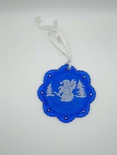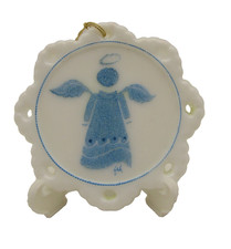 Fenton Glass White Milk Glass Snowflake Blue Angel No Label Vintage Ornament