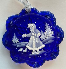 Fenton Cobalt Christmas Ornament Girl Feeding Birds #243/2500
