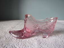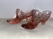 Vintage Pink glass shoe Cabbage Rose pattern 5.5"
