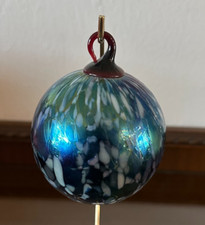 NEW Hand Blown Glass Christmas Ornament Blue Carnival Glass Iridescent Fenton?