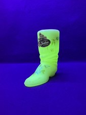 Uranium Glass Fenton Custard Glass Boot Hand Painted Floral Design Match Holder
