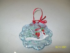 Fenton 1999 Misty Blue Snowman Christmas Ornament QVC C1714 8K