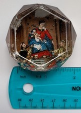 Antique Faceted Glass Religious Lithograph Paperweight Madonna of the Rosary