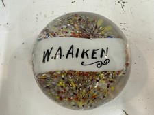 Antique 19th Century W.A. Aiken Personalized Glass Paperweight