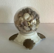 Antique EAPG Milk Glass Base Globe Paperweight, Filled with Seashells