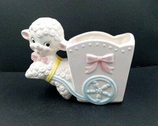 VTG MID-CENTURY RUBENS ORIGINAL #628M BABY LAMB W/CART KITSCH NURSERY PLANTER