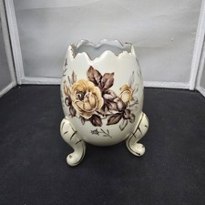 Vintage Napcoware Japan Footed Egg Planter Vase 3 Leg Hand Painted Floral Gold