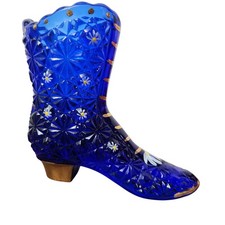 Fenton Glass "Daisy & Button" Cobalt Blue Hand Painted Victorian tall boot 4"