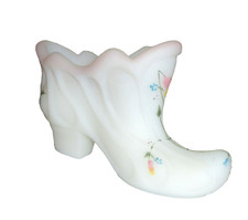 Vtg Fenton Shoe Slipper Boot White Satin Hand Painted Flowers & Vines Pink Trim