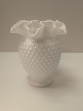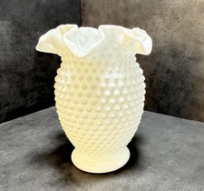 Vintage Fenton Hobnail Milk Glass Ruffled Crimped Edge 6" Vase