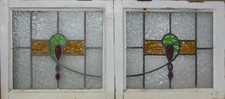 PRETTY ABSTRACT PAIR OF OLD ENGLISH STAINED GLASS WINDOWS 20.5" X 15"