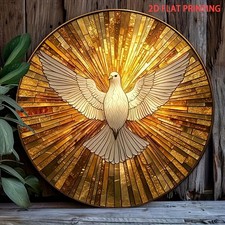 2D Flat 1xVintage Stained Glass Spirit Dove Round Wall Sign Iron Circular Decor↗