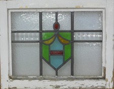 BEAUTIFUL EDWARDIAN OLD ENGLISH LEADED STAINED GLASS WINDOW 21 1/2" x 20"