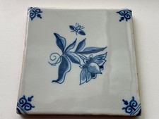 Antique TILE MAKKUM Tichelaar Delft blue Holland flowers and plain (only Plain*)