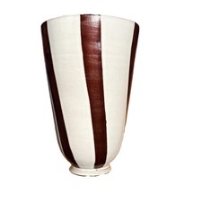 Mid-Century Modern Ceramic Vase Vintage Brown And White Striped