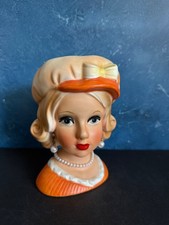 VINTAGE LADY HEAD VASE RELPO BLONE TEEN IN MOD CAP 5.75”