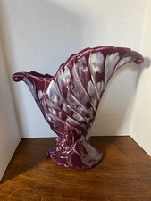 VTG Mid Century Modern Glass Vase Decor Ivory Off White Purple Swirl MCM