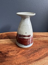 Stoneware Art Pottery Bud Vase Tan Red Unsigned Unique Excellent Vintage