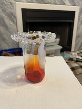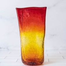 *RARE~ Blenko Crackled Medium Paper Bag Vase - Tangerine
