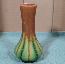 O M C Japan Brown Drippy Glaze Bud Flower Vase Mid Century 60's Ceramic 4" Tall