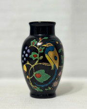 Vintage Eduardo Vega Round Pottery Vase Peacocks Mid Century Modern