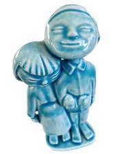 Earthenware Sculpture 6" Hip Vintage Couple Blue Fashion Decor Art Glaze Retro