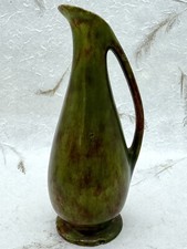 Vintage Pottery Ewer Bud Vase Green Brown Glaze Mid Century Modern Signed Date