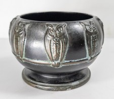 Antique Arts and Crafts Norse Pottery Bowl with Owl Decoration, Repaired