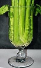 Antique Mouth Blown Glass Etched Celery Vase Polished Pontil Mark 19th Century