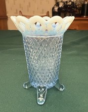 Vintage ‘40s Fenton Katy Blue Diamond Point Scalloped Rim Vase & Four Feet. Rare
