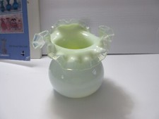 Vintage Fenton Type Art Glass Ivory Crest ? Custard Vase Ruffled Edges ~ 5"