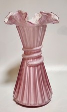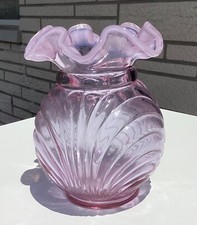 Vintage Fenton Art Glass Vase ~ 1950s Pink Swirl Ruffled ~ 6” Crimped Rim
