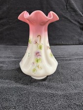 Fenton VTG Frosted Glass Satin 6.5" Vase Iridescent H. P. Flowers 24" Circumfer