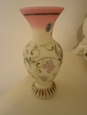 Fenton 1991 Hand-Painted Opalescent Glass Vase Floral Design VTG.