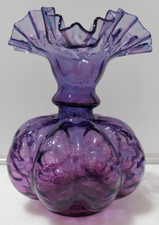 Fenton 1942 Scarce Mulberry Diamond Optic Petticoat Crimp 8in Melon Vase