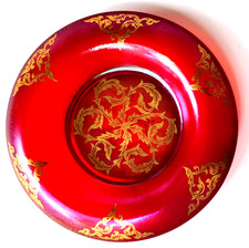 Fenton Art Glass Ruby Red Rose Bowl in Brass Stand Starburst & Tree Pattern