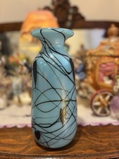 Vtg Fenton Vase Azure Blue Hand Blown Satin Finish Cincinnati Gallery Original