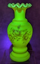 Ruffle Fenton Vase Custard Satin Uranium Glass Signed Cabin Glows Vintage