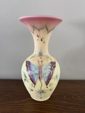Fenton Burmese Papillon Butterfly Hand Painted Vase 1998