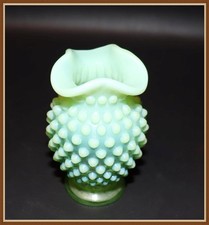 Vintage Fenton Green Opalescent Art Glass Hobnail Mini Vase Uranium Glows