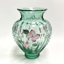 VTG Fenton Hand Painted Glass Vase 7" Signed SVA Limited Edition 48/7116 Green